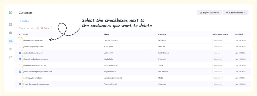 - Select customers using the checkboxes on the left
