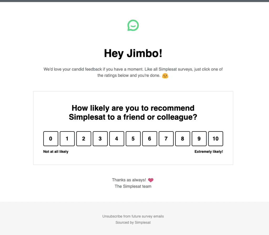 Simplesat’s automated follow-up feature gives you the chance to send email reminders to customers who haven’t taken action yet, thus improving response rates. 🎉